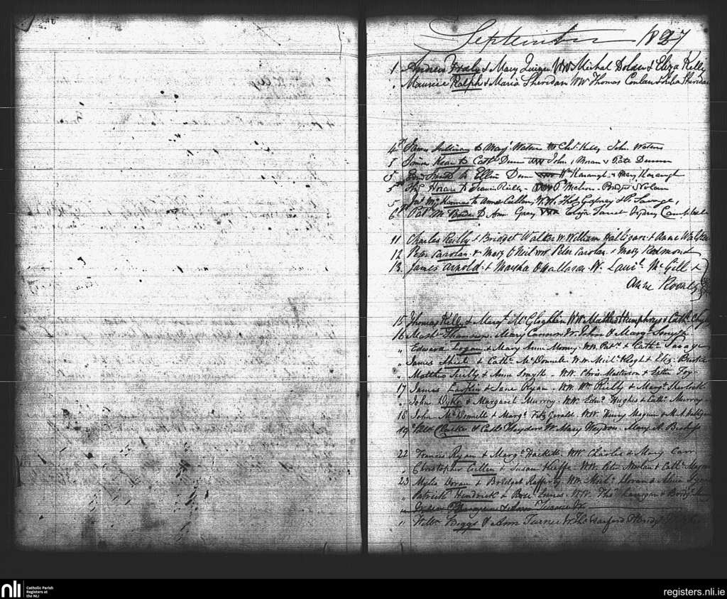 St. Mary's, Dublin city; County of Dublin; Archdiocese of Dublin. Marriages, Sep. 1827