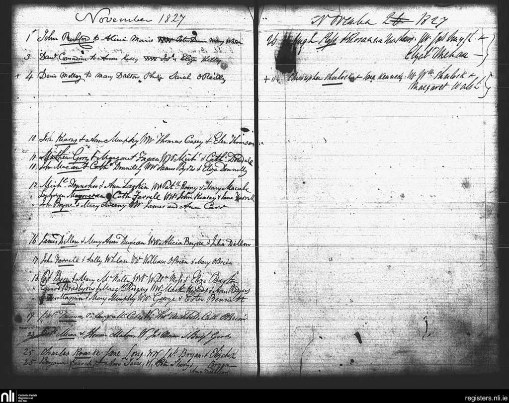 St. Mary's, Dublin city; County of Dublin; Archdiocese of Dublin. Marriages, Nov. 1827