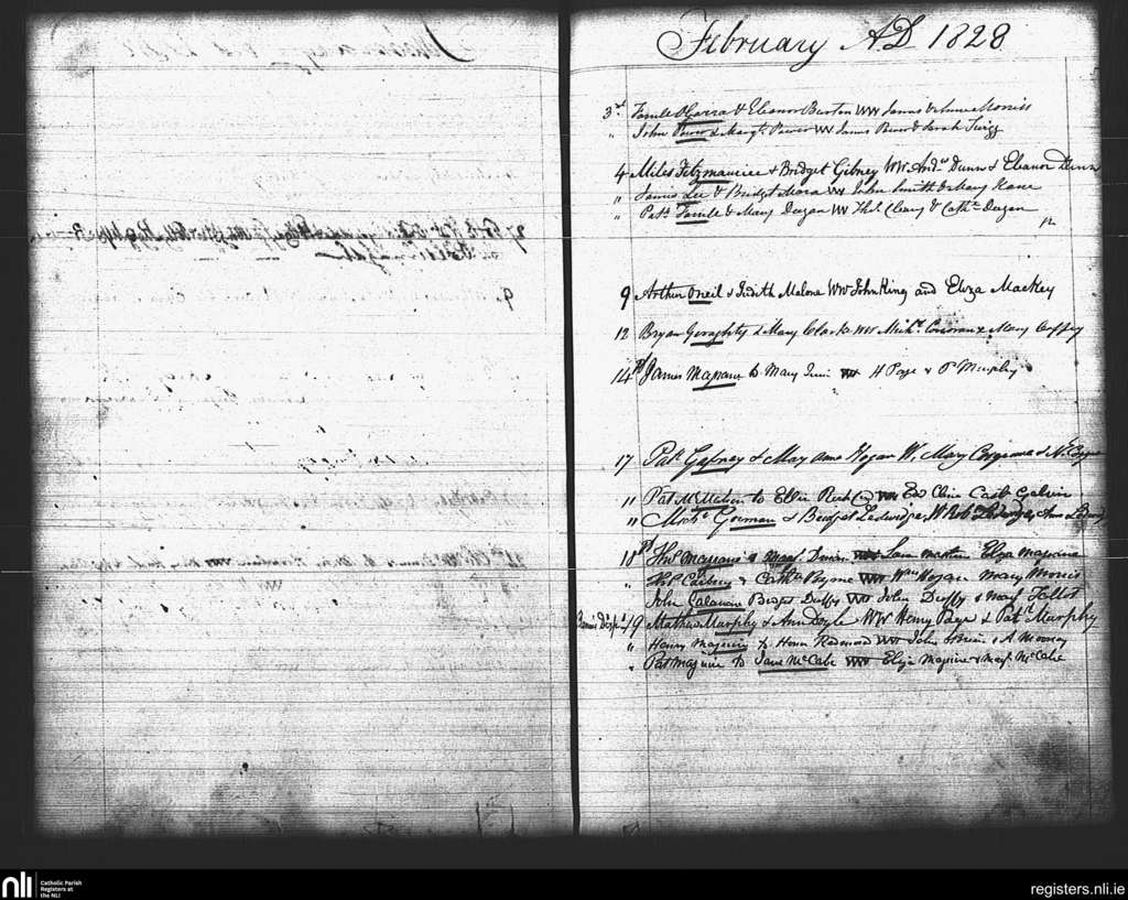 St. Mary's, Dublin city; County of Dublin; Archdiocese of Dublin. Marriages, Feb. 1828