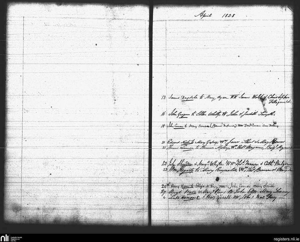 St. Mary's, Dublin city; County of Dublin; Archdiocese of Dublin. Marriages, Apr. 1828