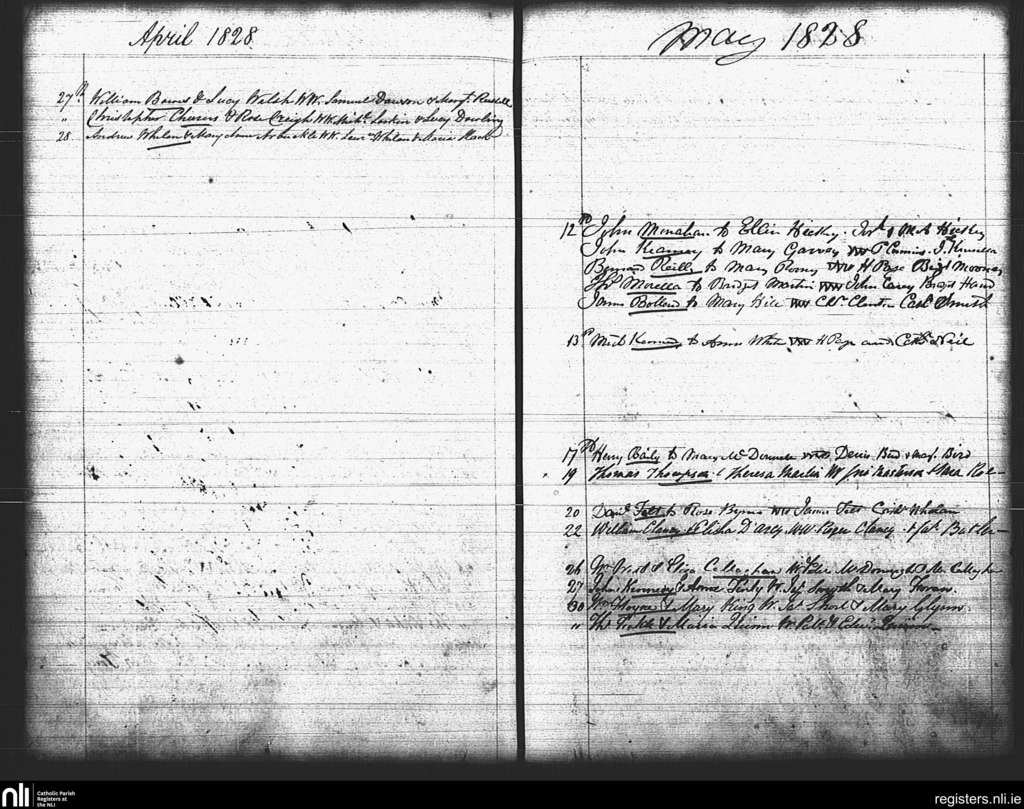 St. Mary's, Dublin city; County of Dublin; Archdiocese of Dublin. Marriages, Apr. 1828 to May 1828