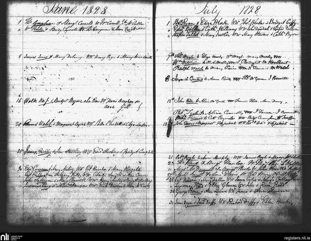 St. Mary's, Dublin city; County of Dublin; Archdiocese of Dublin. Marriages, June 1828 to July 1828