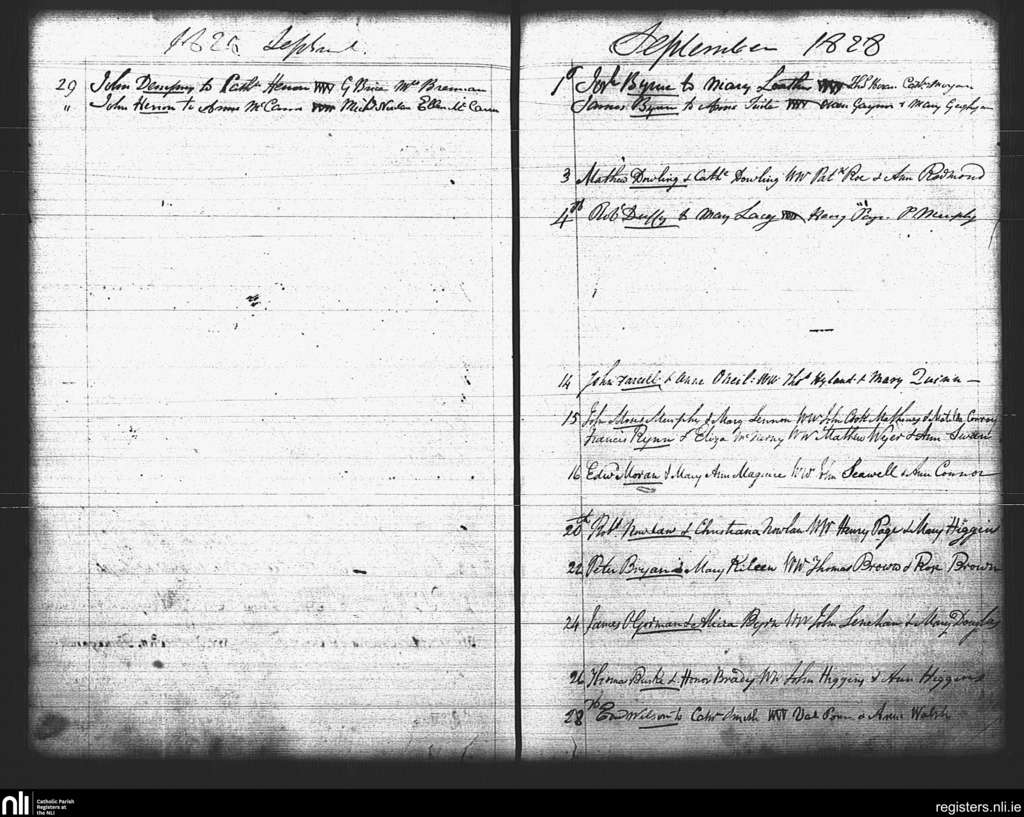 St. Mary's, Dublin city; County of Dublin; Archdiocese of Dublin. Marriages, Sep. 1828