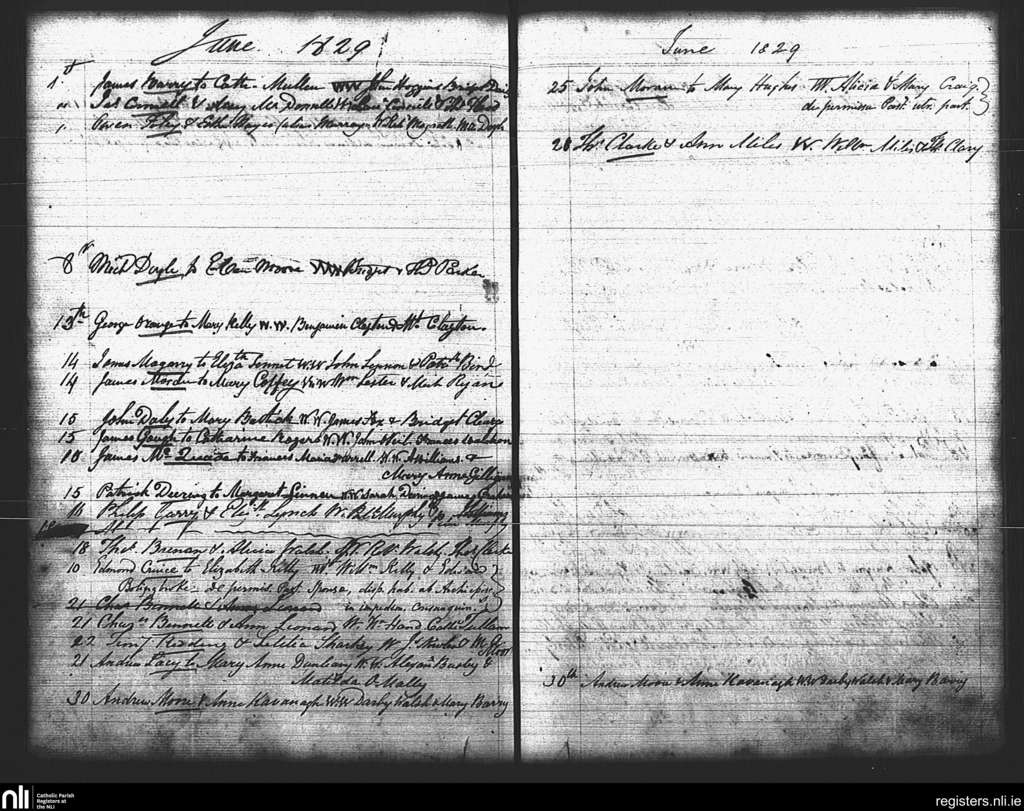 St. Mary's, Dublin city; County of Dublin; Archdiocese of Dublin. Marriages, June 1829