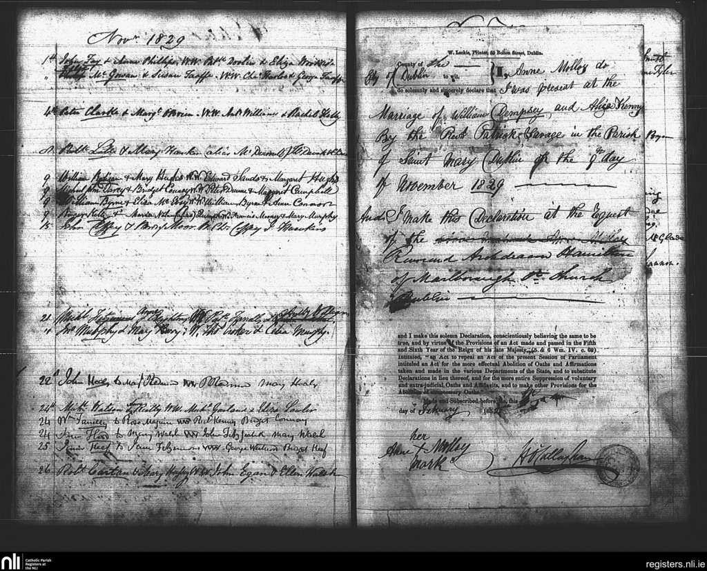 St. Mary's, Dublin city; County of Dublin; Archdiocese of Dublin. Marriages, Nov. 1829 to Feb. 1852