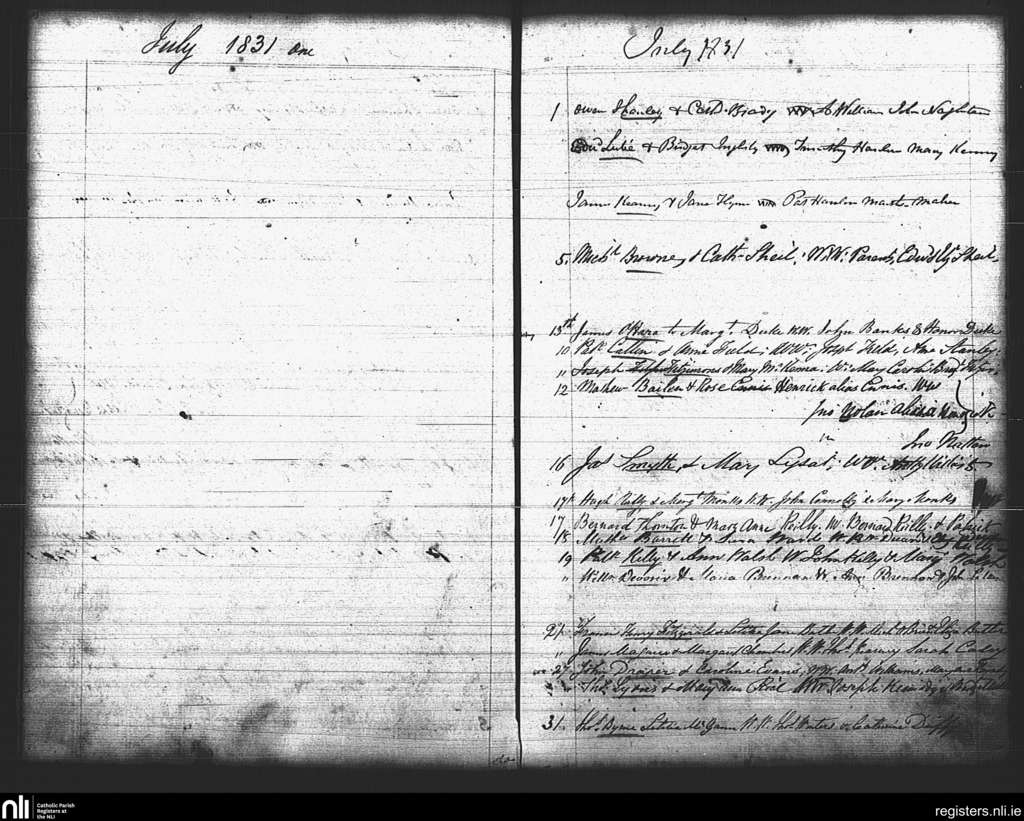 St. Mary's, Dublin city; County of Dublin; Archdiocese of Dublin. Marriages, July 1831