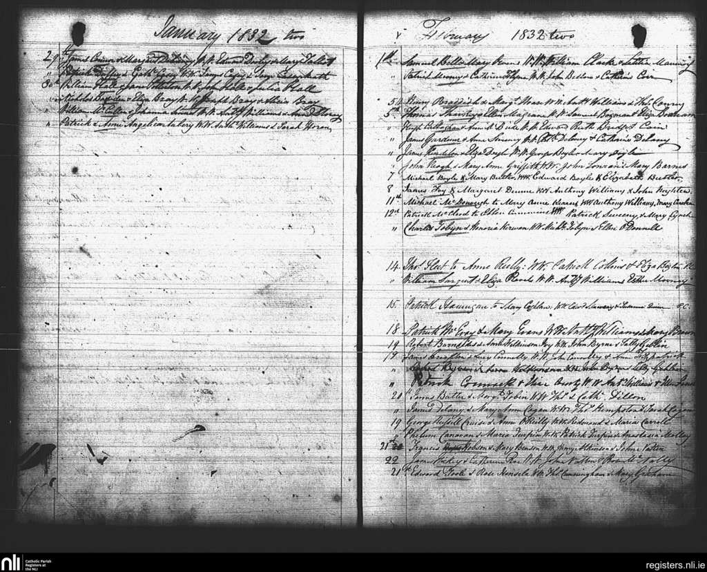 St. Mary's, Dublin city; County of Dublin; Archdiocese of Dublin. Marriages, Jan. 1832 to Feb. 1832