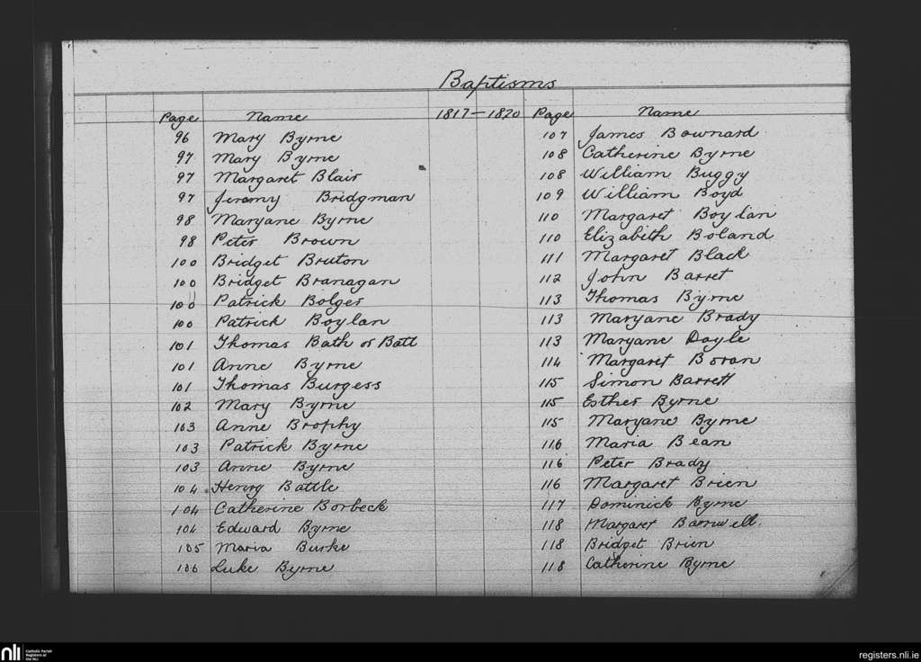 St. Mary's, Dublin city; County of Dublin; Archdiocese of Dublin. Baptisms