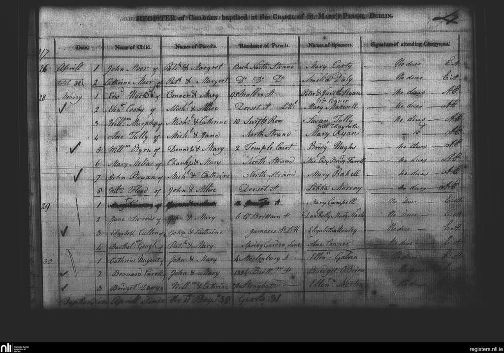 St. Mary's, Dublin city; County of Dublin; Archdiocese of Dublin. Baptisms, Apr. 1817