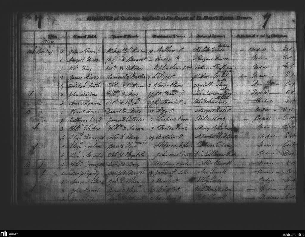 St. Mary's, Dublin city; County of Dublin; Archdiocese of Dublin. Baptisms, May 1817