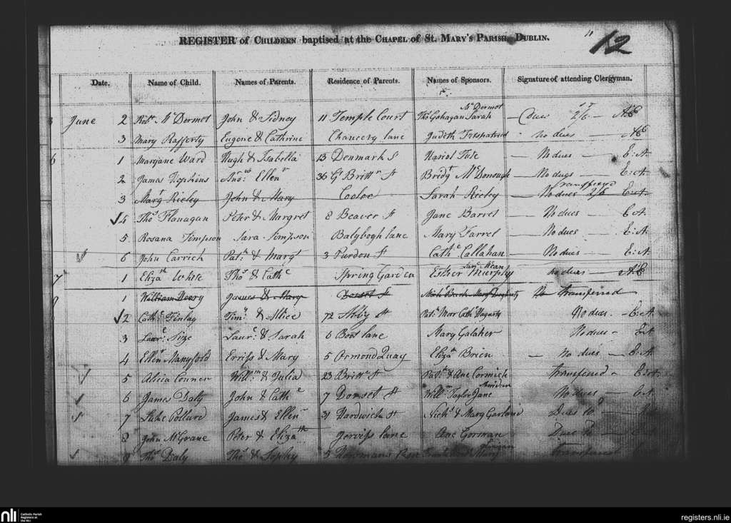 St. Mary's, Dublin city; County of Dublin; Archdiocese of Dublin. Baptisms, June 1817
