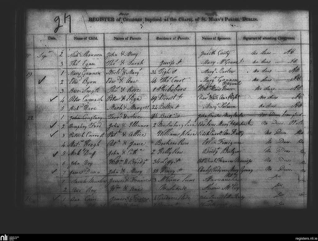 St. Mary's, Dublin city; County of Dublin; Archdiocese of Dublin. Baptisms, Sep. 1817