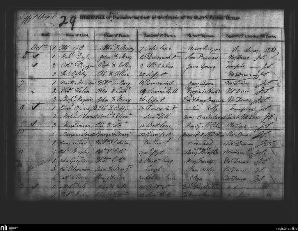 St. Mary's, Dublin city; County of Dublin; Archdiocese of Dublin. Baptisms, Oct. 1817
