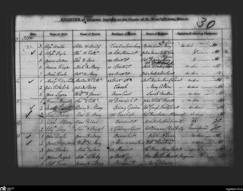 St. Mary's, Dublin city; County of Dublin; Archdiocese of Dublin. Baptisms, Oct. 1817