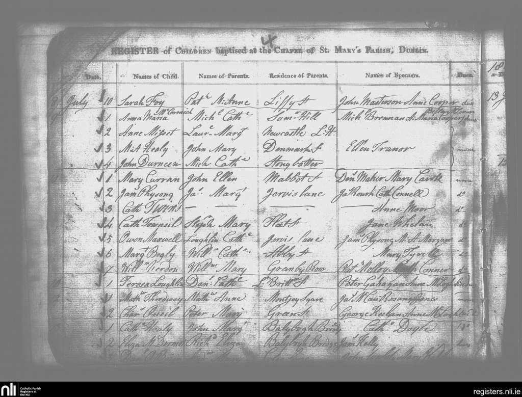 St. Mary's, Dublin city; County of Dublin; Archdiocese of Dublin. Baptisms, July 1822