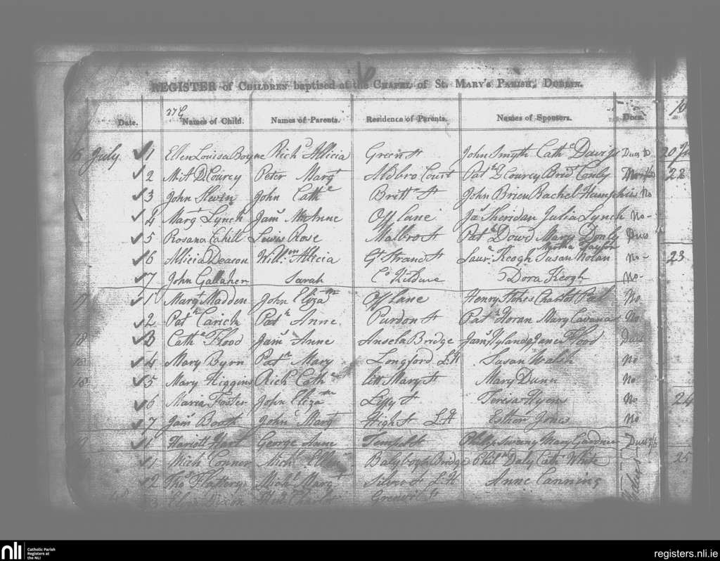 St. Mary's, Dublin city; County of Dublin; Archdiocese of Dublin. Baptisms, July 1822