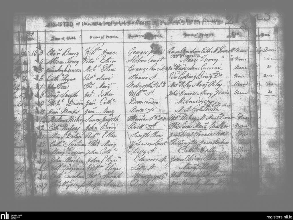 St. Mary's, Dublin city; County of Dublin; Archdiocese of Dublin. Baptisms, Sep. 1822
