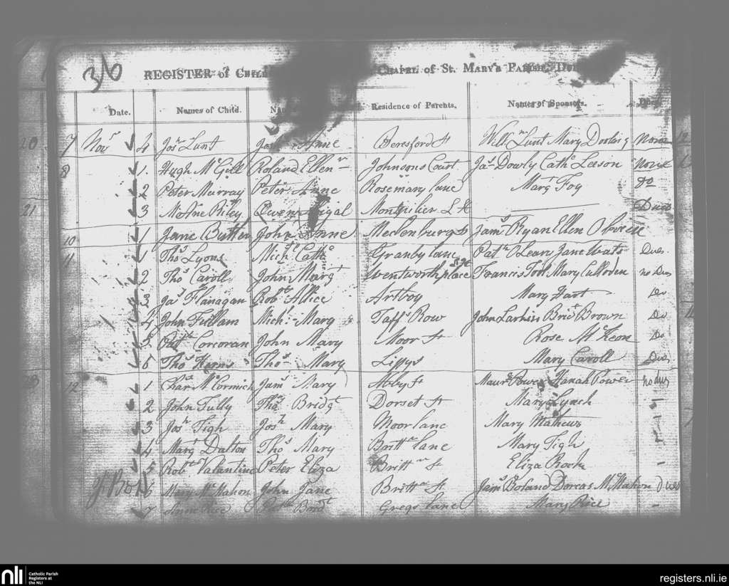 St. Mary's, Dublin city; County of Dublin; Archdiocese of Dublin. Baptisms, Nov. 1822