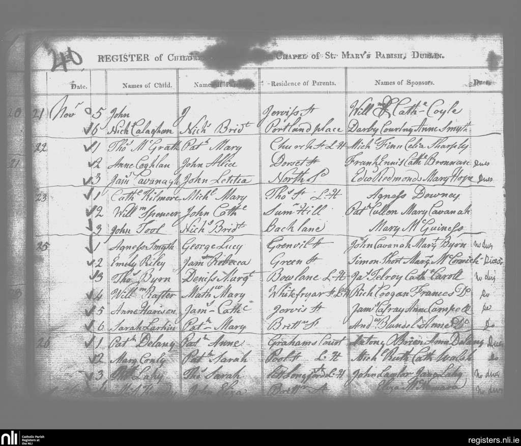 St. Mary's, Dublin city; County of Dublin; Archdiocese of Dublin. Baptisms, Nov. 1822