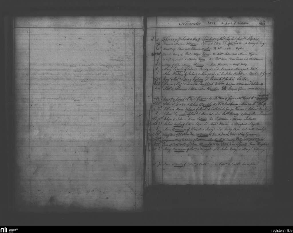St. Mary's, Dublin city; County of Dublin; Archdiocese of Dublin. Baptisms, Nov. 1827