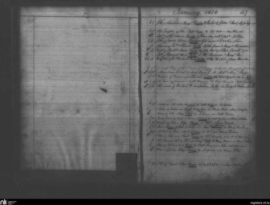 St. Mary's, Dublin city; County of Dublin; Archdiocese of Dublin. Baptisms, Jan. 1828