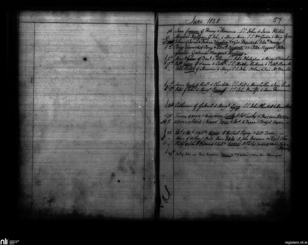 St. Mary's, Dublin city; County of Dublin; Archdiocese of Dublin. Baptisms, June 1828