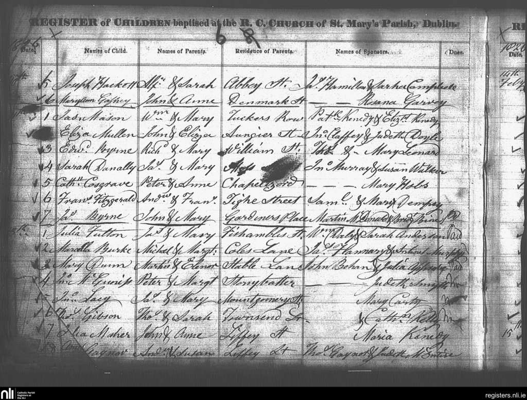 St. Mary's, Dublin city; County of Dublin; Archdiocese of Dublin. Baptisms, Feb. 1826