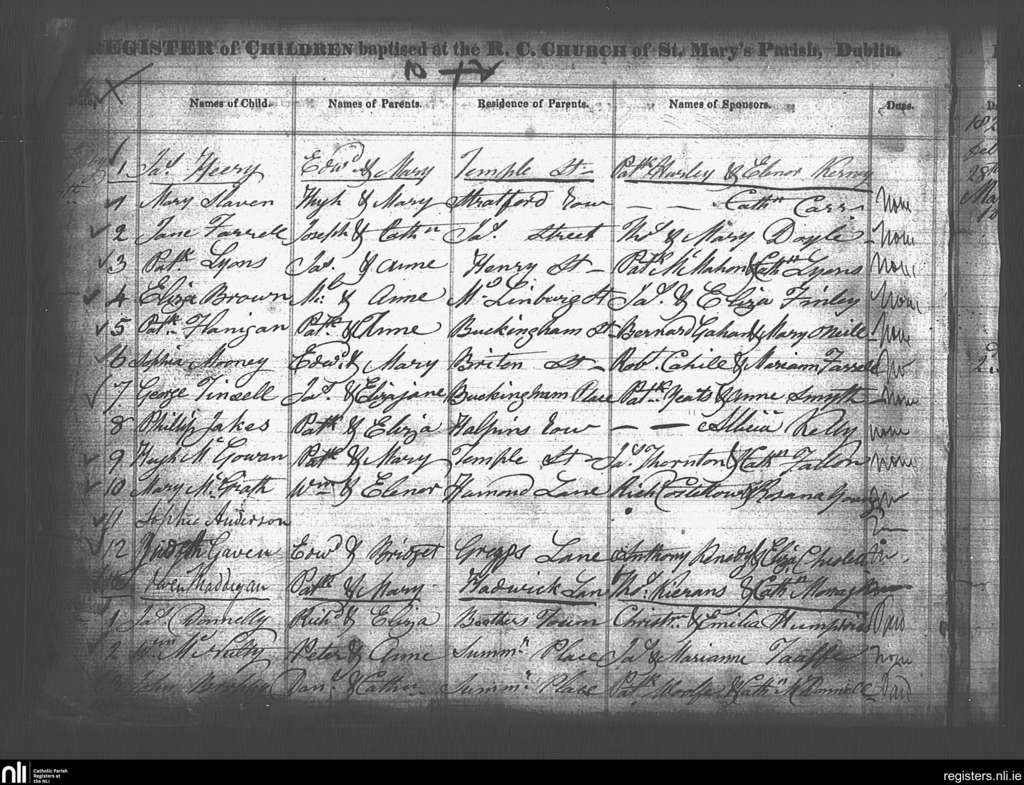 St. Mary's, Dublin city; County of Dublin; Archdiocese of Dublin. Baptisms, Feb. 1826