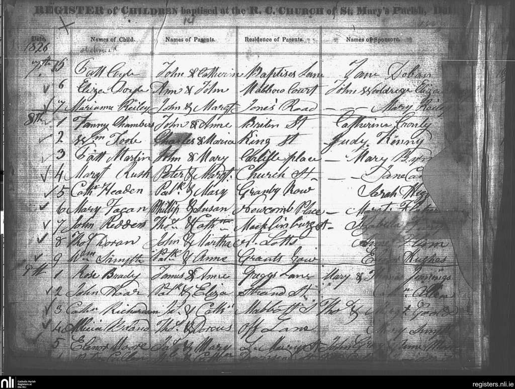 St. Mary's, Dublin city; County of Dublin; Archdiocese of Dublin. Baptisms, Mar. 1826
