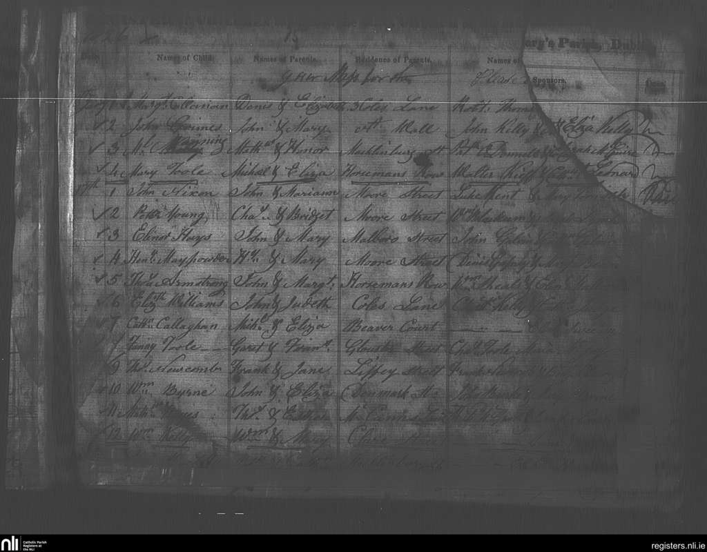 St. Mary's, Dublin city; County of Dublin; Archdiocese of Dublin. Baptisms, Mar. 1826