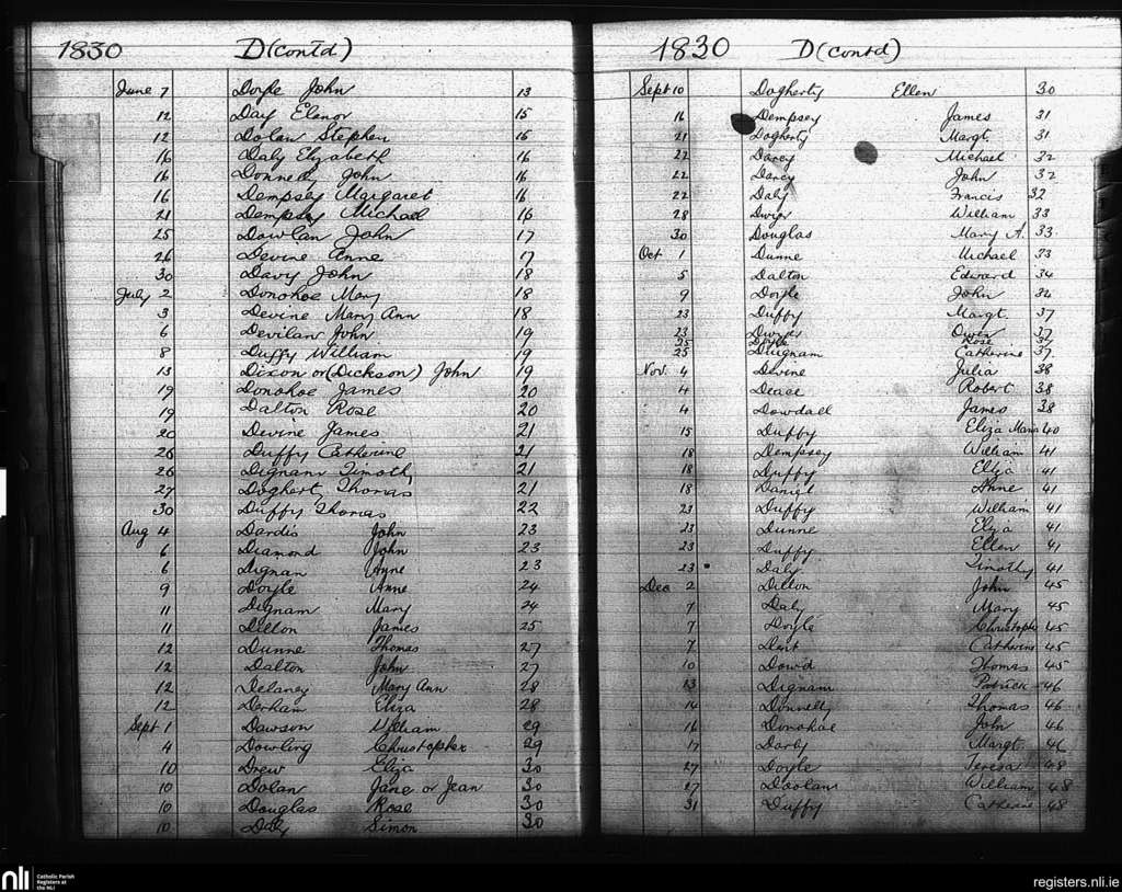 St. Mary's, Dublin city; County of Dublin; Archdiocese of Dublin. Baptisms, June 1830 to Dec. 1830