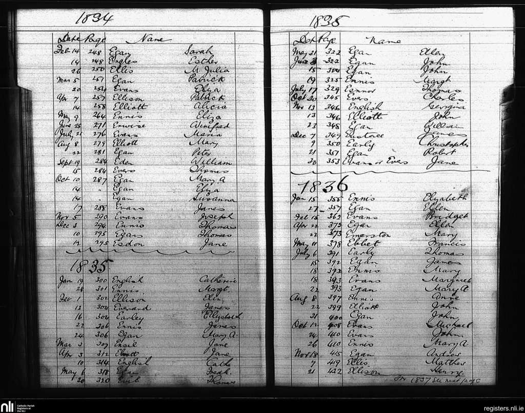 St. Mary's, Dublin city; County of Dublin; Archdiocese of Dublin. Baptisms, Feb. 1834 to Nov. 1836