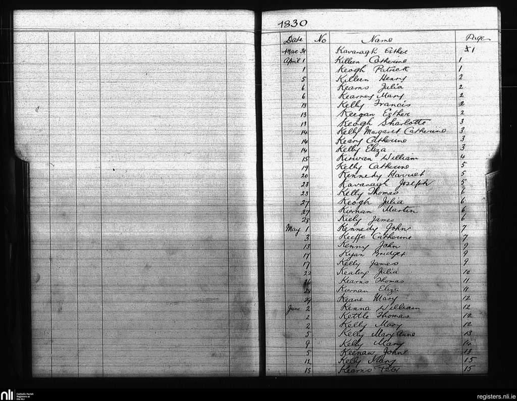 St. Mary's, Dublin city; County of Dublin; Archdiocese of Dublin. Baptisms, Mar. 1830 to June 1830