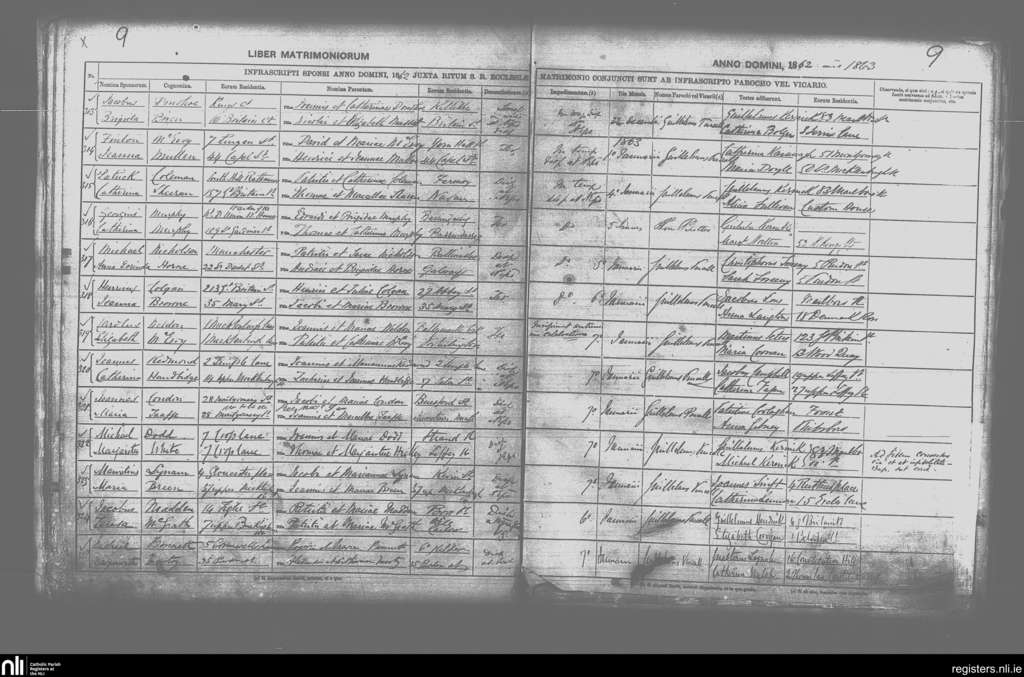 St. Mary's, Dublin city; County of Dublin; Archdiocese of Dublin. Marriages, Dec. 1862 to Jan. 1863