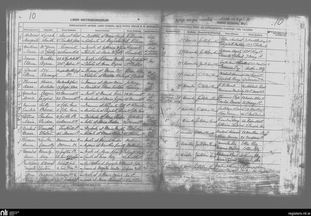St. Mary's, Dublin city; County of Dublin; Archdiocese of Dublin. Marriages, Nov. 1862 to Dec. 1862