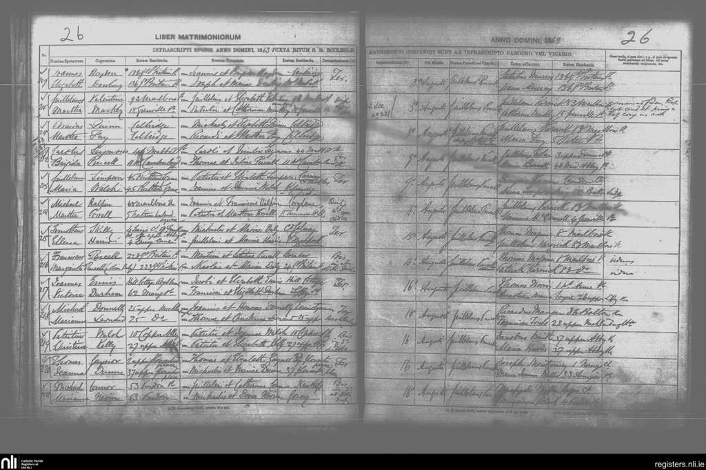 St. Mary's, Dublin city; County of Dublin; Archdiocese of Dublin. Marriages, Aug. 1863