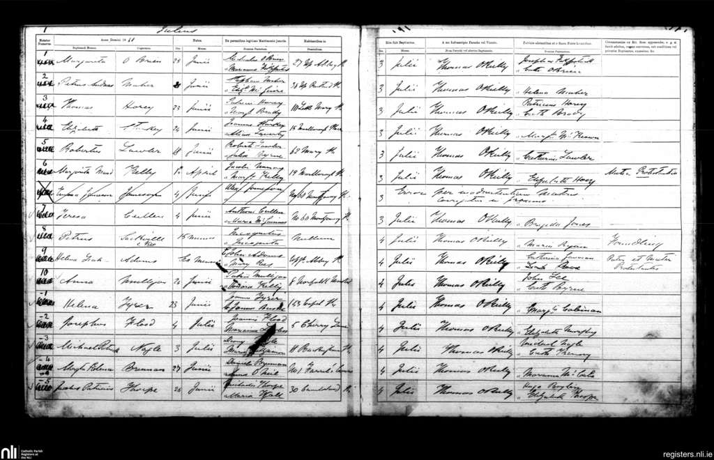 St. Mary's, Dublin city; County of Dublin; Archdiocese of Dublin. Baptisms, July 1868