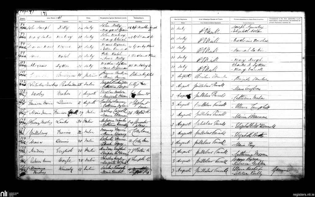 St. Mary's, Dublin city; County of Dublin; Archdiocese of Dublin. Baptisms, July 1868 to Aug. 1868