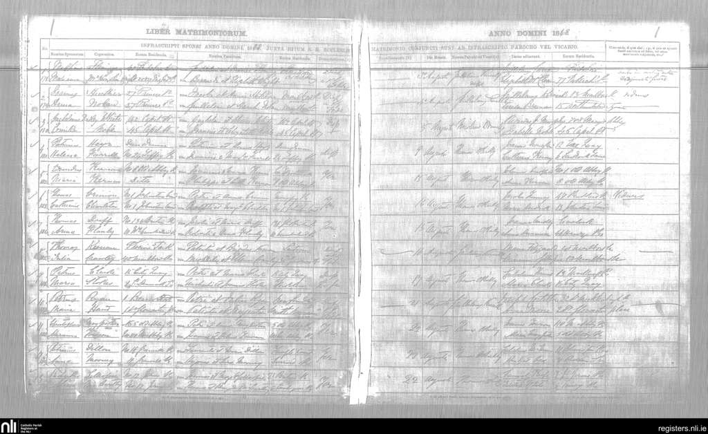 St. Mary's, Dublin city; County of Dublin; Archdiocese of Dublin. Marriages, Aug. 1868