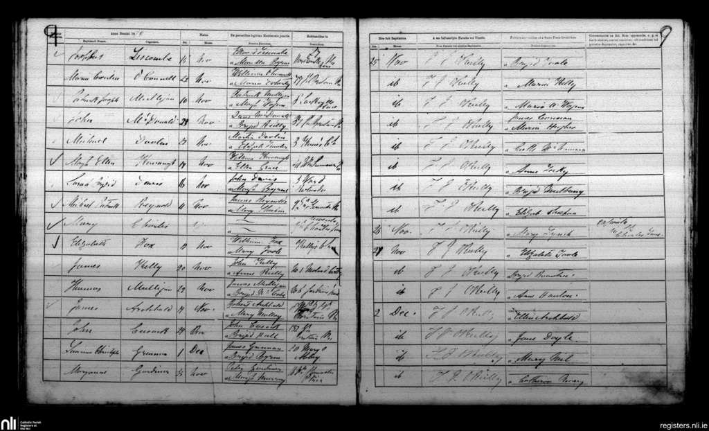 St. Mary's, Dublin city; County of Dublin; Archdiocese of Dublin. Baptisms, Nov. 1870 to Dec. 1870
