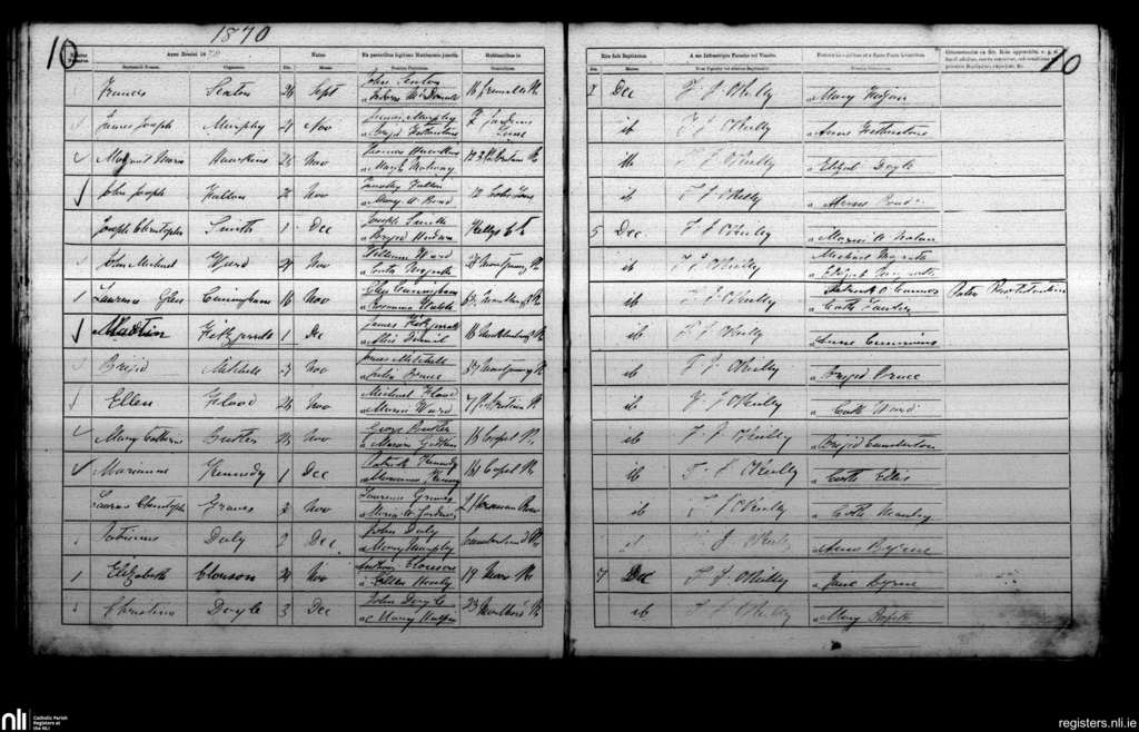 St. Mary's, Dublin city; County of Dublin; Archdiocese of Dublin. Baptisms, Dec. 1870