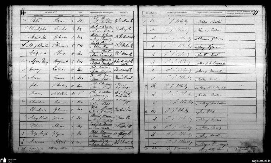 St. Mary's, Dublin city; County of Dublin; Archdiocese of Dublin. Baptisms, Dec. 1870
