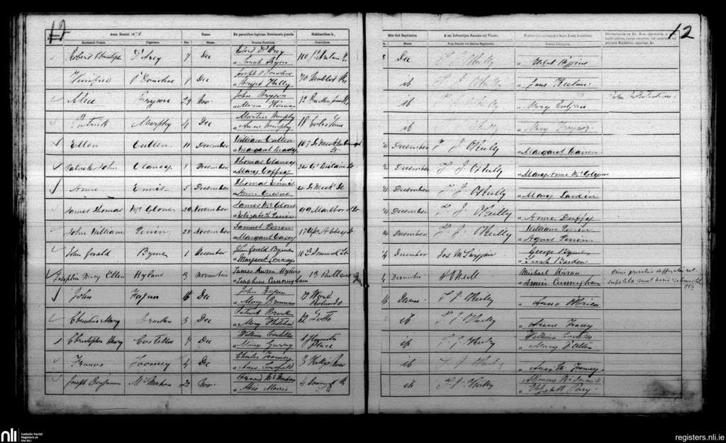 St. Mary's, Dublin city; County of Dublin; Archdiocese of Dublin. Baptisms, Dec. 1870
