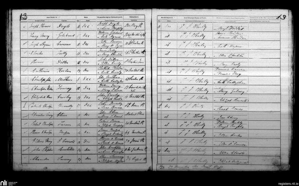 St. Mary's, Dublin city; County of Dublin; Archdiocese of Dublin. Baptisms, Dec. 1870