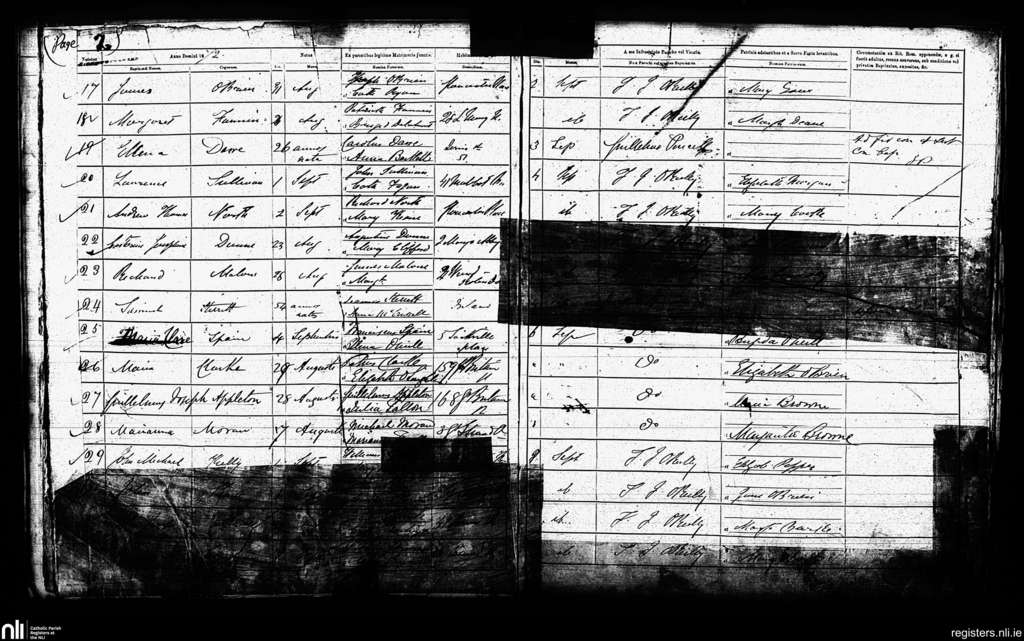 St. Mary's, Dublin city; County of Dublin; Archdiocese of Dublin. Baptisms, Sep. 1872