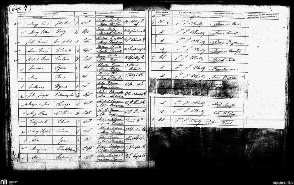 St. Mary's, Dublin city; County of Dublin; Archdiocese of Dublin. Baptisms, Oct. 1872