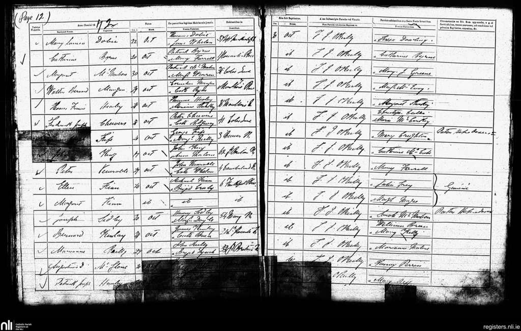 St. Mary's, Dublin city; County of Dublin; Archdiocese of Dublin. Baptisms, Oct. 1872