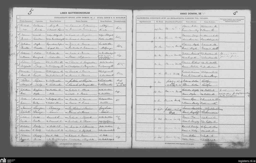 St. Mary's, Dublin city; County of Dublin; Archdiocese of Dublin. Marriages, Jan. 1876 to Feb. 1876