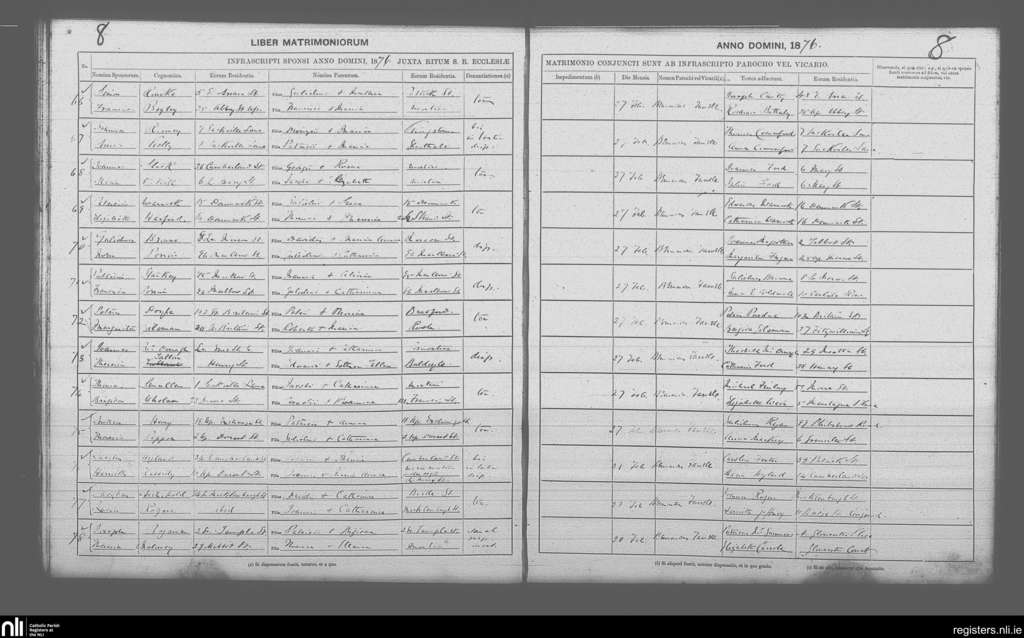 St. Mary's, Dublin city; County of Dublin; Archdiocese of Dublin. Marriages, Feb. 1876