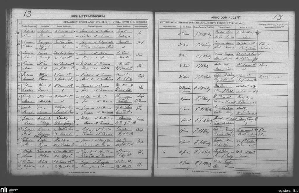 St. Mary's, Dublin city; County of Dublin; Archdiocese of Dublin. Marriages, May 1876 to June 1876
